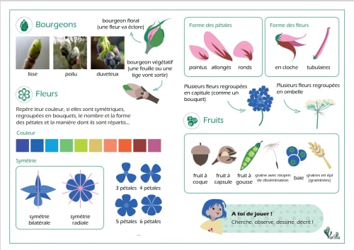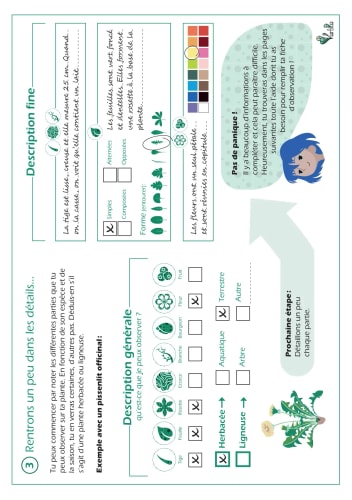 Toute la première partie du carnet est dédiée à apprendre à décrire et observer les plantes en donnant des bases de botanique. Une fois que vous connaîtrez déjà tout ça, vous serez prêts à aller chercher des informations en autonomie !